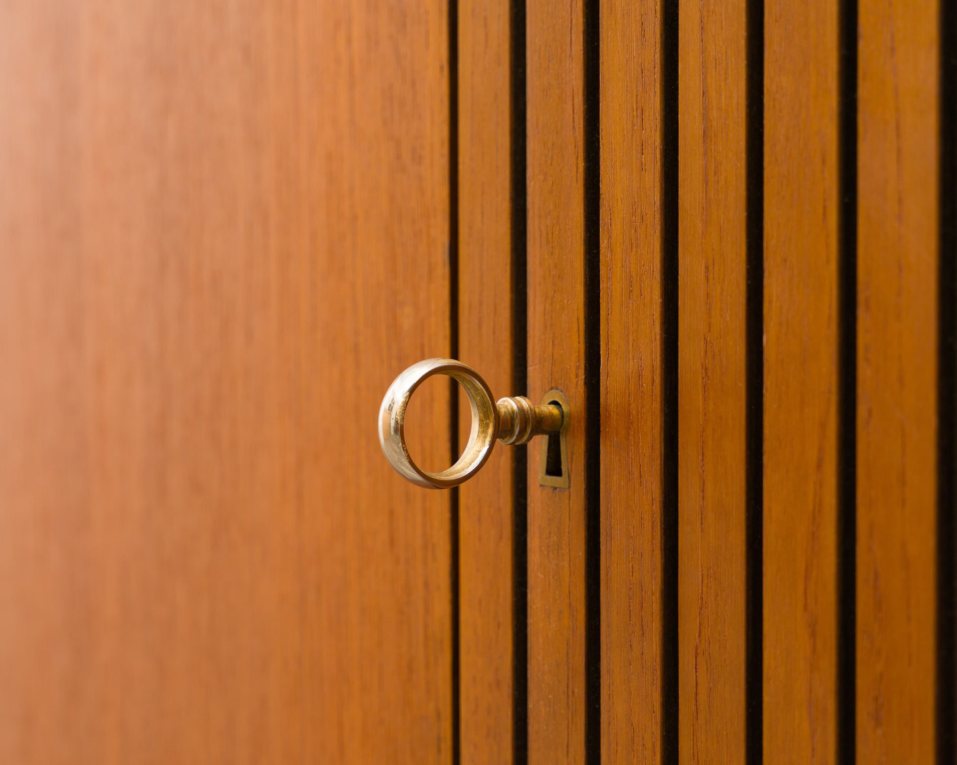 Grand buffet haut en teck avec portes cannelées, années 1960