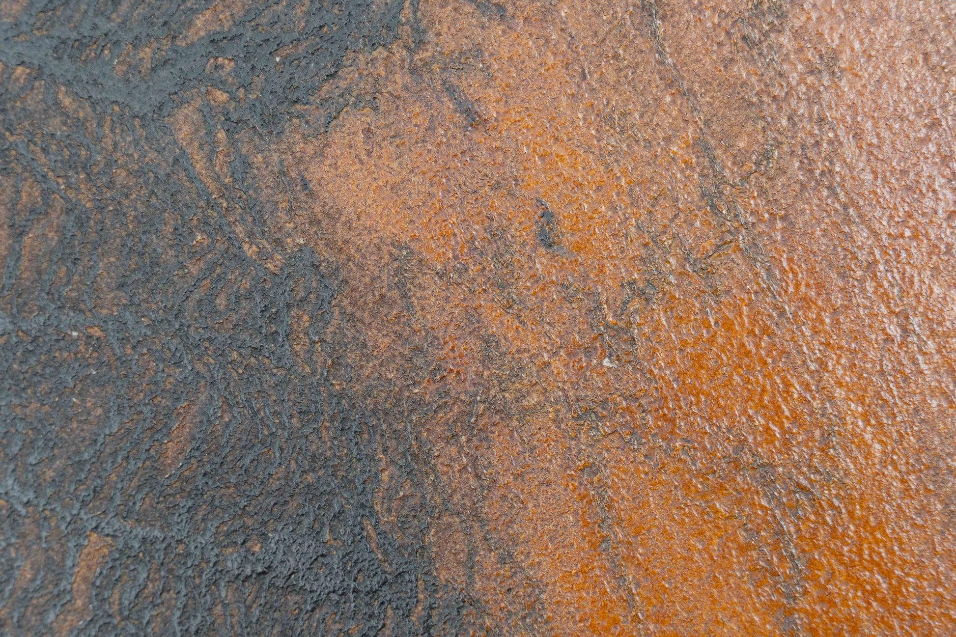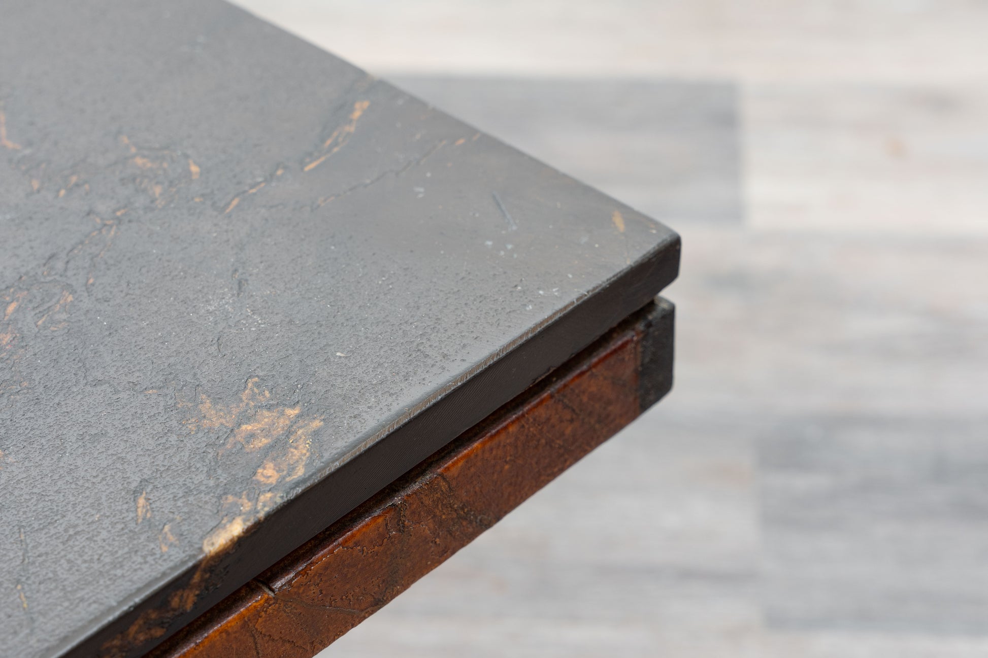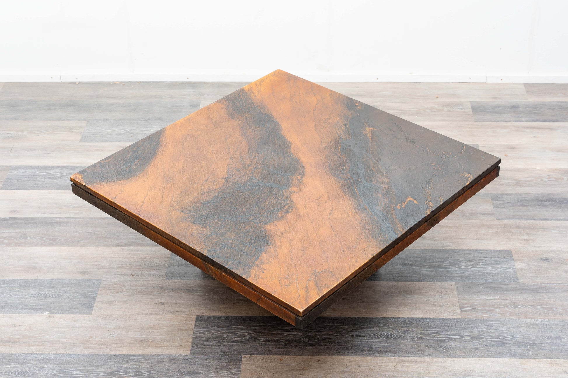 70er-Jahre-Couchtisch, Marmor mit schwarz- und rostbraunem Kunstharz bezogen