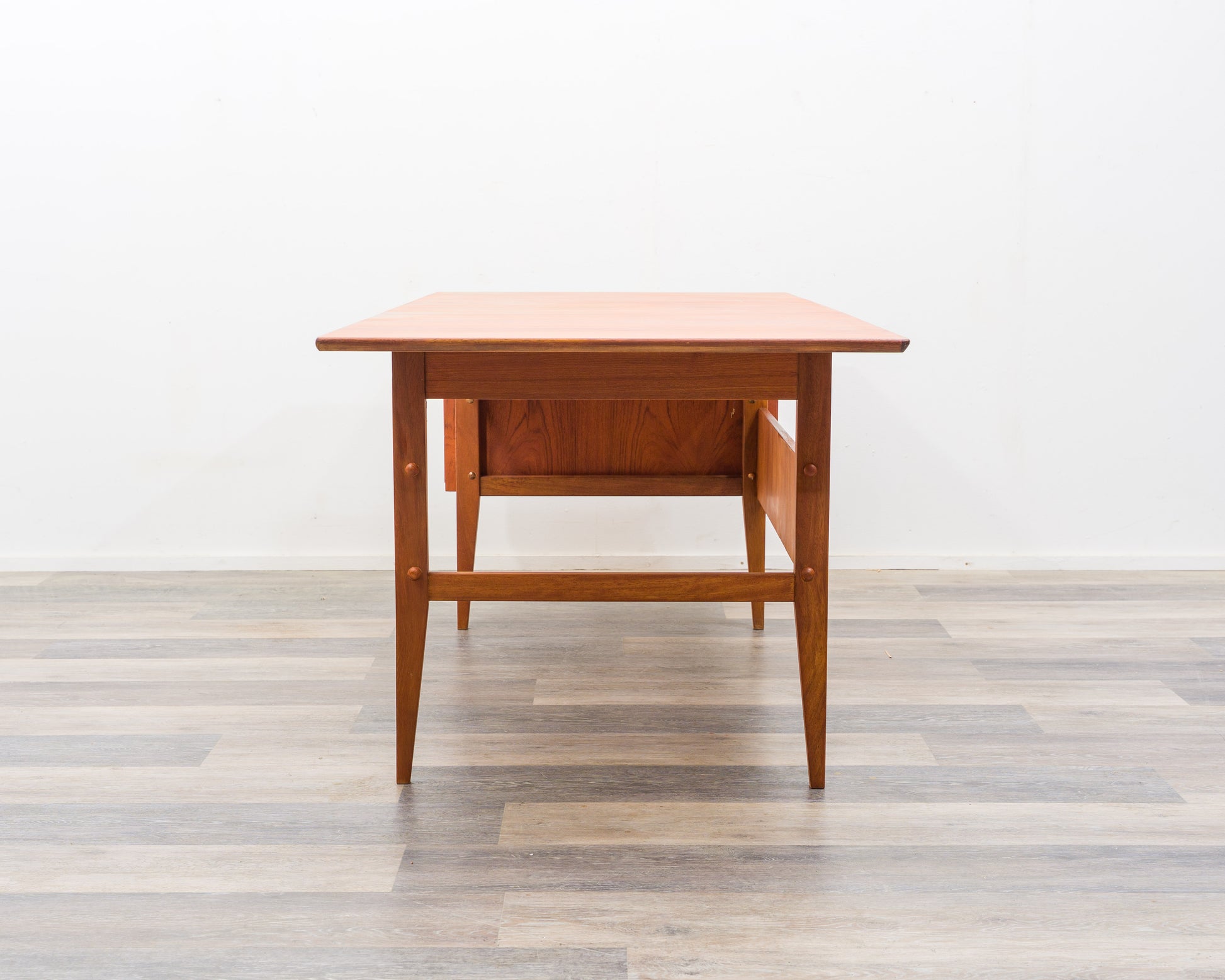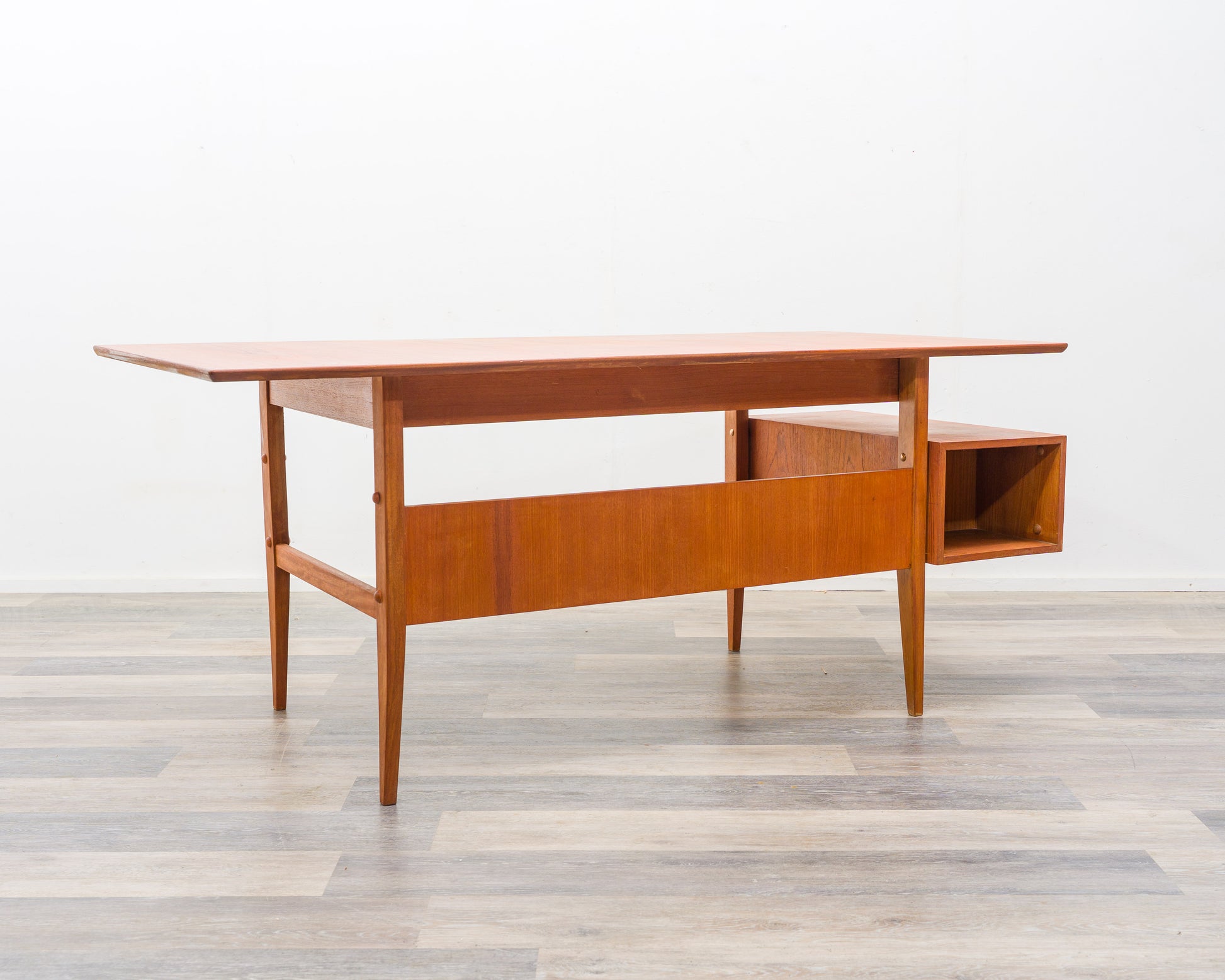 Hochwertiger Schreibtisch in Teakholz, im skandinavisch-puristischen Design der 60er Jahre.